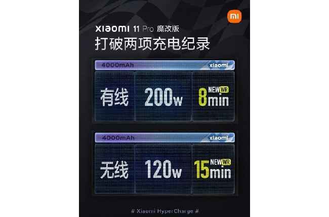 Xiaomi का दावा है कि 200W हाइपरचार्ज तकनीक (200W HyperCharge Technology) 4000mAh की बैटरी को तीन मिनट में 50% तक चार्ज कर सकती है। बैटरी को फुल चार्ज होने में 8 मिनट का समय लगेगा। 120W वायरलेस चार्जिंग समान बैटरी को 1 मिनट में 10%, 7 मिनट में 50% और 15 मिनट में 100% चार्ज करती है। इसे भी पढ़ें: Rs 500 से भी कम में आने वाले BSNL, Airtel, Vi और Jio के बेस्ट प्रीपेड प्लान