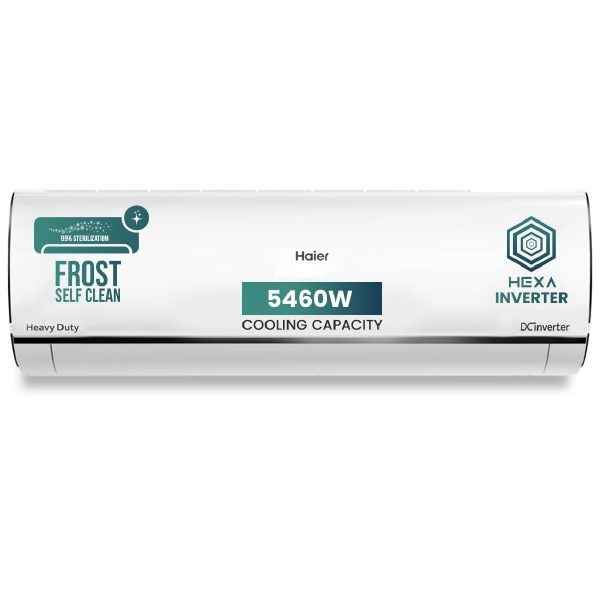 Haier 1.6 Ton 5 Star HEXA Inverter Split AC (5460W, Copper, Heavy Duty, 4 way Swing, Frost Self Clean, 7 in 1, HD Filter, Cools at 60°C, 20 Mtr. Air Throw -...