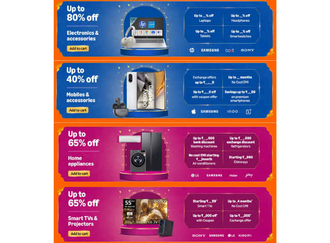 সেল চলাকালীন স্মার্টফোন গ্রাহকরা পাবেন বিশেষ অফার। অ্যাপল, স্যামসাং, আইকিউও, ওয়ানপ্লাসের মতো ব্র্যান্ডের লেটেস্ট স্মার্টফোন এবং এসেসরিজে 40 শতাংশ পর্যন্ত ছাড় পাওয়া যাবে। যদি আপনি একটি নতুন প্রিমিয়াম ফোন কেনার কথা ভাবছেন, তাহলে এই বিক্রয় একটি দুর্দান্ত সুযোগ হতে পারে।