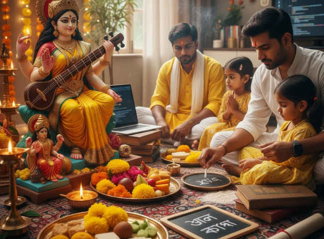 হাতেখড়ি থেকে ডিগ্রি—মা যেন সব ধাপে তোমার সহায় থাকেন। শুভ বসন্ত পঞ্চমী!