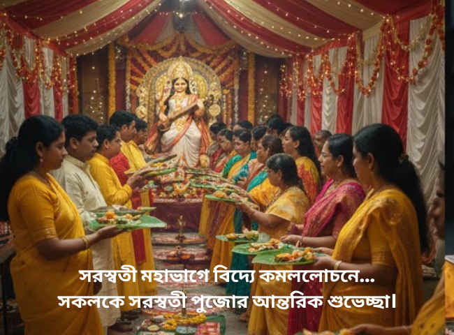 Saraswati Puja 2026 wishes in Bengali: সরস্বতী পূজা 2026 এর শুভেচ্ছা
