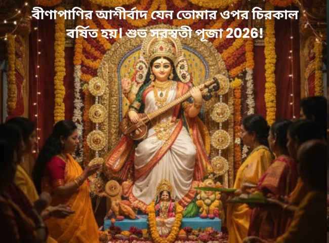 বীণাপাণির আশীর্বাদ যেন তোমার ওপর চিরকাল বর্ষিত হয়। শুভ সরস্বতী পূজা 2026!