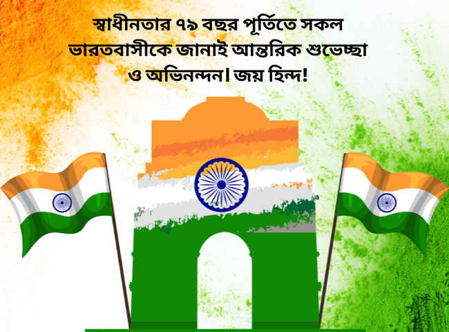 স্বাধীন ভারতের নাগরিক হতে পেরে আমরা গর্বিত। তাই 79 তম স্বাধীনতা দিবস উপলক্ষে রইল অনেক অনেক শুভেচ্ছা এবং অভিনন্দন