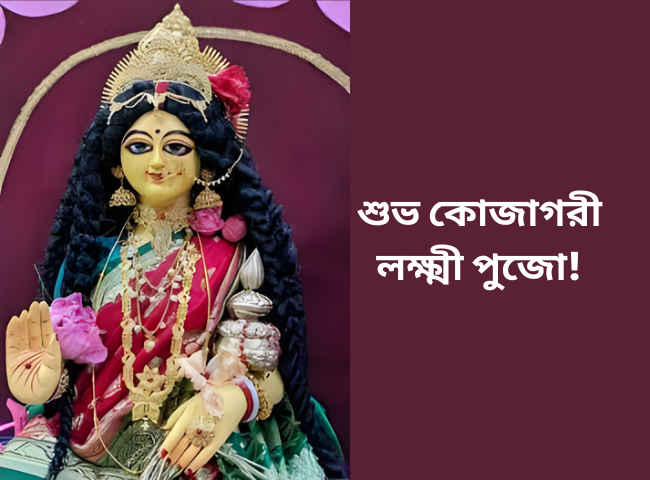 Kojagari Lakshmi Puja 2025 wishes in Bengali: বাংলায় শারদীয়া দুর্গোৎসবের পর আশ্বিন মাসের শুক্লপক্ষের শেষে পূর্ণিমা তিথিতে কোজাগরী লক্ষ্মী পূজার আরাধনা করা হয়। শারদ পূর্ণিমায় বাঙালি হিন্দুর ঘরে ঘরে এক চিরন্তন প্রার্থনা। প্রায় প্রতি ঘরেই দেবী লক্ষ্মীর পূজা হয়ে থাকে। বাঙালির প্রতিটি ঘরেই এই দিনে লক্ষ্মী পূজা পালন করা হয়। 2025 সালে এবার 6 অক্টোবর সোমবার পালিত হচ্ছে কোজাগরী লক্ষ্মীপুজো। এই শুভ তিথিতে প্রিয়জনকে পাঠান লক্ষ্মীপুজোর শুভেচ্ছা।