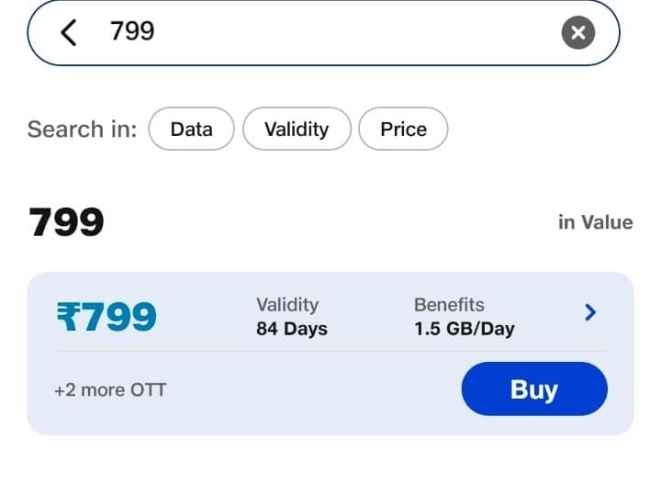 জিও এর এই প্ল্যান 799 টাকায় আসে। এতে গ্রাহকরা 84 দিনের ভ্যালিডিটি পাবেন। এই প্ল্যানে গ্রাহকদের পুরো ভারতে ফ্রি নেশনাল রোমিং এবং আনলিমিটেড কলিং পাওয়া যাবে। এছাড়া গ্রাহকদের এতে প্রতিদিন 1.5GB হাই-স্পিড ডেটা এবং প্রতিদিন 100 ফ্রি SMS সুবিধা দেওয়া হয়।