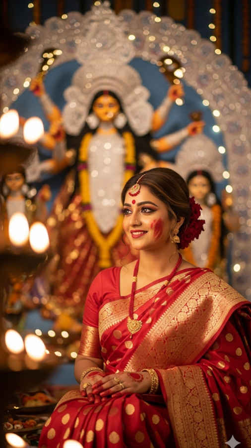 আপনি চাইলে লাল বা অন্য কালারের শাড়ি, রেট্রো ব্যাকগ্রাউন্ড, চুলের স্টাইল, মুখের এক্সপ্রেশন, আলো, যেমনটি চাইছেন তেমন ছবি তৈরি করতে পারেন। আসুন একনজরে দেখে নিন কীভাবে ট্রেন্ডিং ছবি বানাবেন।