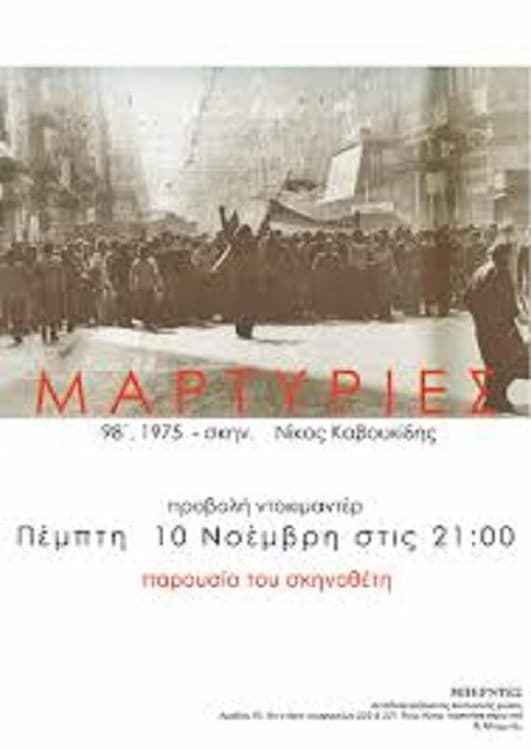 | Actors | Kitty Arseni, Stelios Lionakis, Aristoula Ellinoudi, Nikos Klavas, Sofia Roubou, Nikos Armaos, Christos Tsagas, Maria Farantouri, Míkis Theodorakis, Giorgos Papadopoulos, Andreas Papandreou, Konstantinos Karamanlis, Constantine Glücksburg |