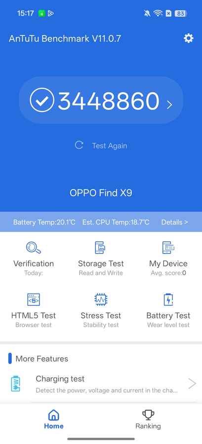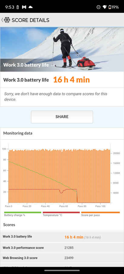 The Oppo Find X9, with its much larger 7,025mAh silicon-carbon battery, is in a different league. It achieved 21 hours and 2 minutes in the PCMark battery test. In the real world, it easily handles a heavy day and often goes well into the second day.