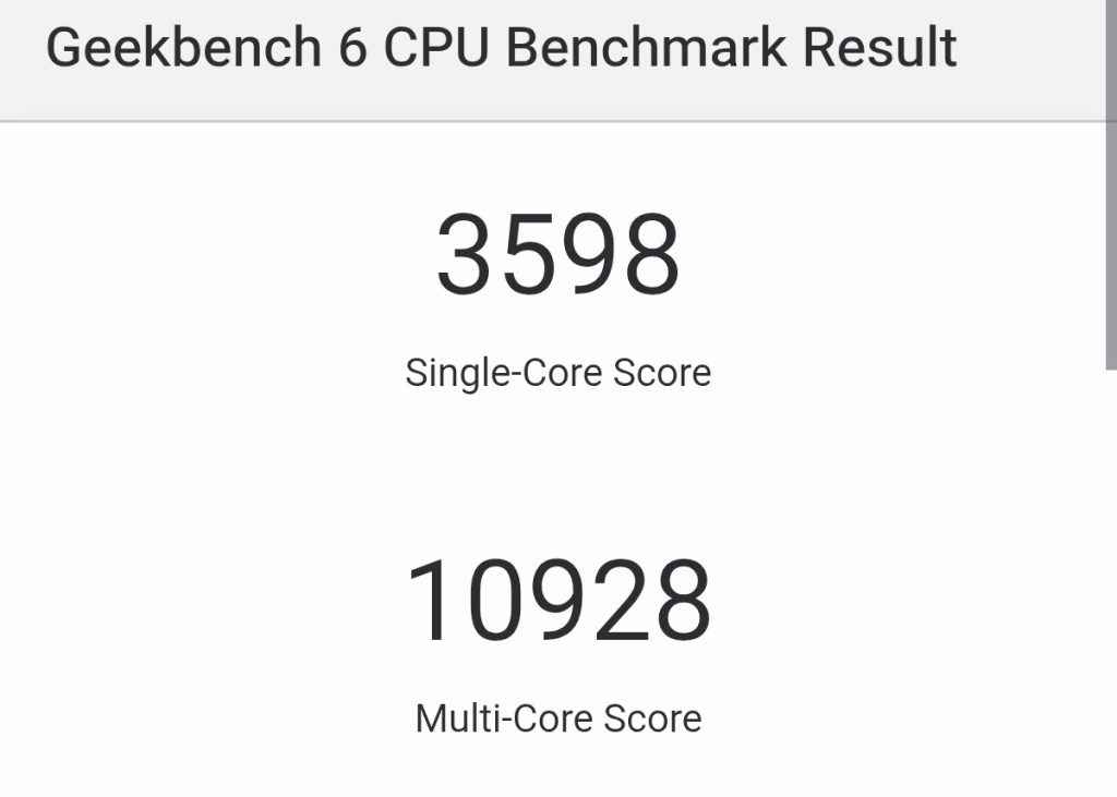 Geekbench 6 results help explain everyday performance. Single-core performance directly affects app launches, UI navigation, camera opening speed, and general system responsiveness. Here, the F8 Ultra scored 3,598. Multi-core performance reflects how well the phone handles sustained workloads, heavy multitasking, and longer processing tasks, and the F8 Ultra scored 10,928 in multi-core testing.
