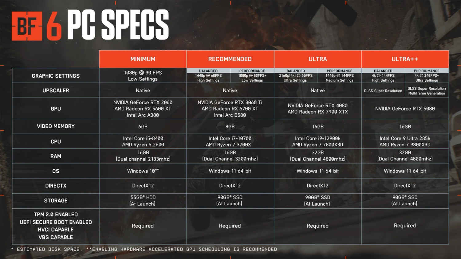 Before we delve into the requirements, it is worth mentioning that the developer has also confirmed that Battlefield 6 will require Secure Boot to be enabled for PC users. This move is likely tied to anti-cheat measures and system integrity enforcement. This means players running older BIOS versions or modified setups will need to ensure their PCs are configured properly before the game’s release. Now, let’s take a look at the PC requirements for the game.