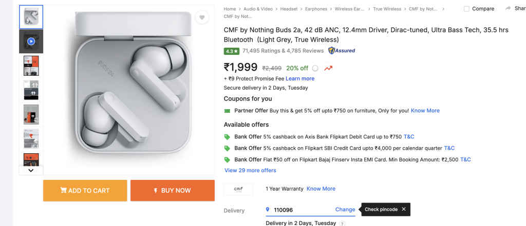 Battery life is claimed at up to 35.5 hours with the case, which is competitive for daily use. The earbuds also support dual device connection, allowing users to stay connected to a phone and a laptop at the same time. With IP54-rated earbuds and Bluetooth 5.3, the CMF Buds position themselves as a clean, well-rounded option for everyday use.