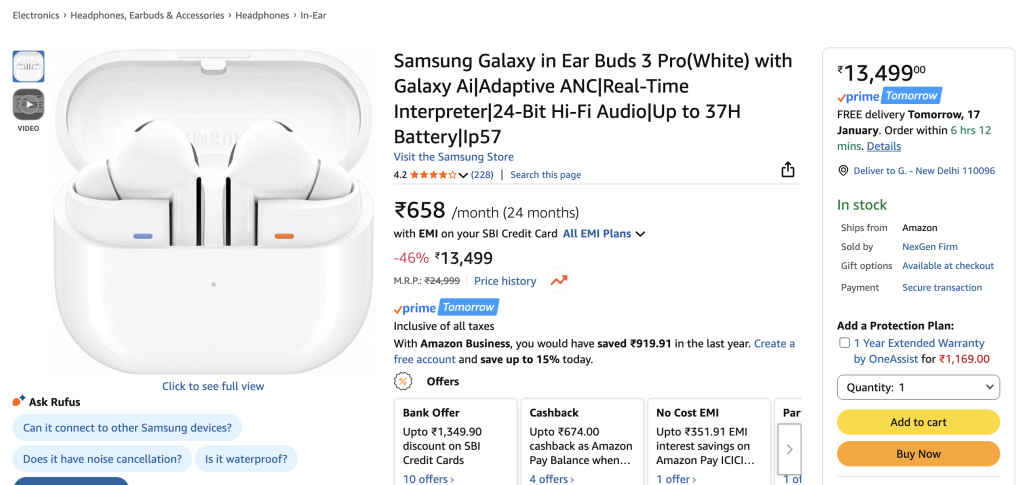 This is Samsung’s most complete TWS under Rs 15,000. You get adaptive ANC and adaptive EQ backed by Galaxy AI, a dual-driver setup, IP57 water resistance, wireless charging, and excellent voice pickup using a dedicated VPU, AI-enhanced microphones and Super Wideband (SWB). Use with a Samsung phone for the best experience.
