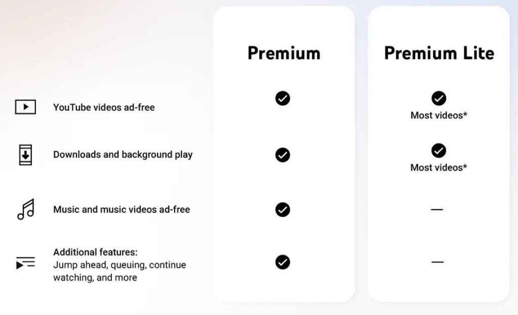 Even though Premium Lite has become more useful, it still comes with restrictions, and if you want to avoid them, the higher-priced Premium plan would make more sense to you. YouTube itself says the Lite plan ‘offers fewer interruptions so you can watch most YouTube and YouTube Kids videos ad-free, offline, and in the background.’