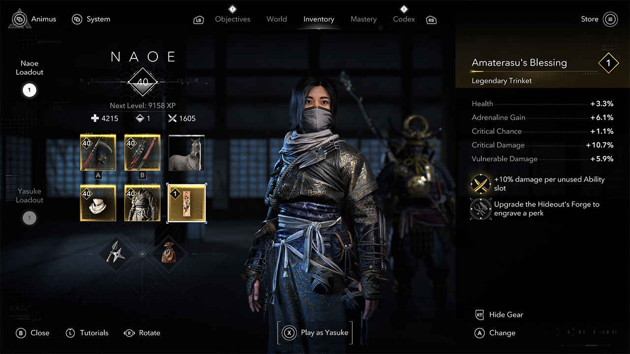 Conversely, Yasuke’s segments are marked by powerful, visceral combat using weapons like the Naginata, Kartana, and muskets. His combat style is robust and satisfying, designed around impactful and brutal melee sequences. Yasuke can seamlessly chain attacks between different weapon types, breaking enemy armour, staggering foes, and delivering devastating finishing moves that visually and mechanically satisfy. Unlike previous entries, Shadows places greater emphasis on tactical combat manoeuvres like perfect parries, counters, and precise timing, making Yasuke’s encounters consistently engaging and strategically demanding.