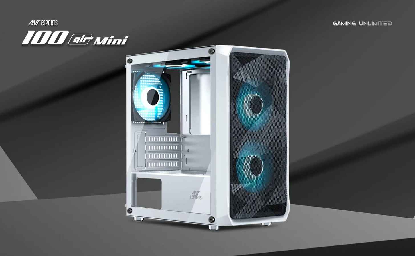 Compact case with a tempered glass panel and decent airflow. Add a ₹500 fan for better cooling.