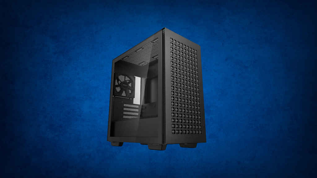 Compact micro-ATX case with mesh front panel, tempered glass, and two pre-installed 120mm fans. Supports GPUs up to 360mm.