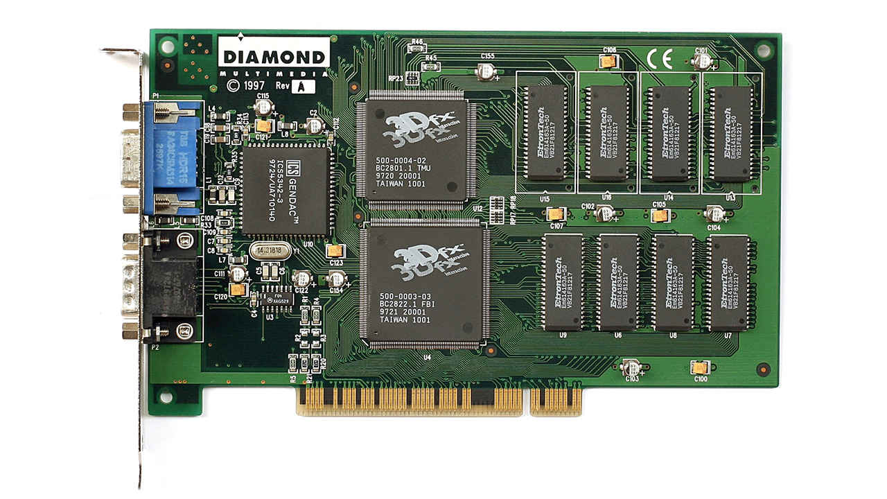 If there is a single moment when PC graphics became a consumer arms race, it’s the arrival of dedicated 3D accelerator cards or VGA cards or graphics cards. 3dfx’s Voodoo Graphics chip is a central milestone. The Voodoo Graphics chip went to manufacturing on November 6, 1995, and the first graphics card using it, Orchid’s Righteous 3D, was released on October 7, 1996. This was also a slightly awkward era when you look back because the Voodoo Graphics card was a 3D-only add-on, meaning you still needed a separate 2D video card for normal desktop use.
