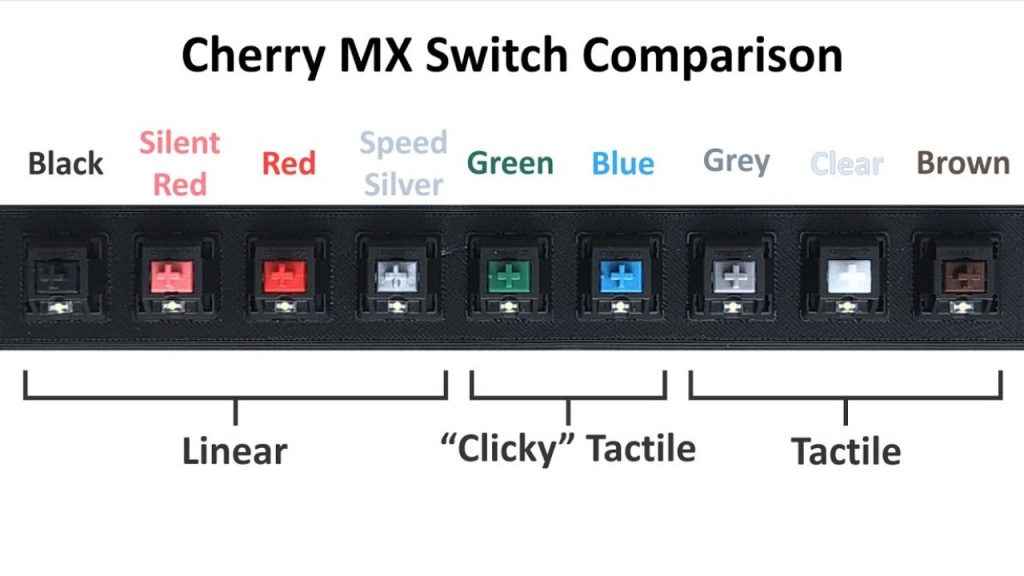 - Tactile switches (like Cherry MX Brown) have a subtle bump that lets you know when a key has been actuated. This is a popular hybrid choice for those who want a balance between gaming and typing.