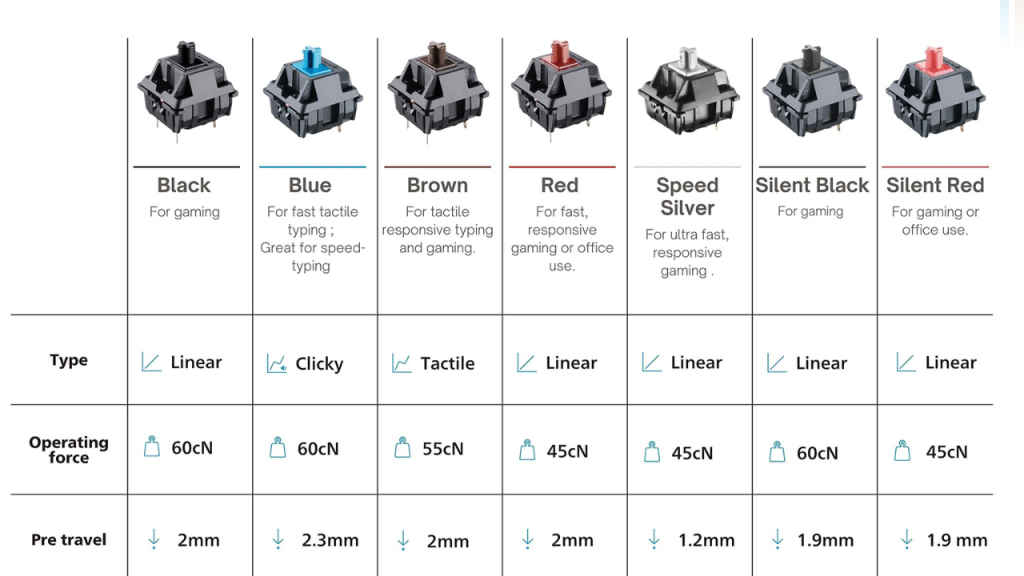Choosing the right mechanical switch is a highly personal decision, and there is no “best” option, only the best option for you. By understanding the core principles of linear, tactile, and clicky switches, and by familiarizing yourself with the classic Cherry MX lineup, you can confidently navigate the vast world of mechanical keyboards and find the perfect tool to elevate your gaming performance.