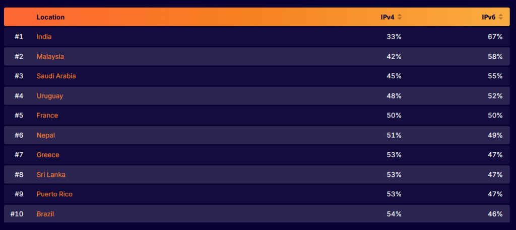 While many Western nations struggle to upgrade legacy networks, India has effectively leapfrogged into the future. The 2025 report cements India’s position as the undisputed global leader in IPv6 adoption, with a massive 67% adoption rate.