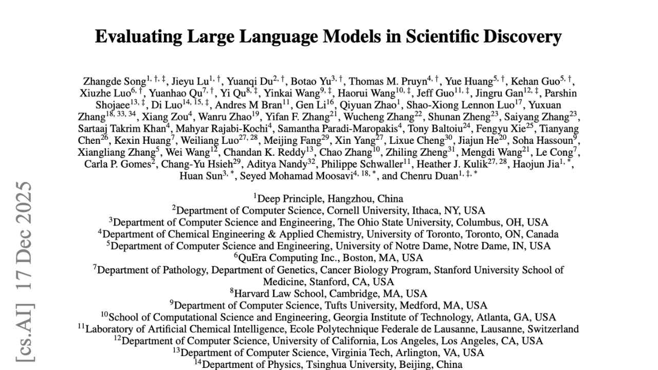 But a new research paper, Evaluating Large Language Models in Scientific Discovery, arrives just in time before the end of 2025 to give our GenAI exuberance some much needed sobering pause. Authored by researchers from around the world, including MIT, Harvard and Stanford University, the paper asks the question we’ve mostly dodged because it’s inconvenient: can an LLM actually do scientific discovery, or is it just very good at sounding like it can?