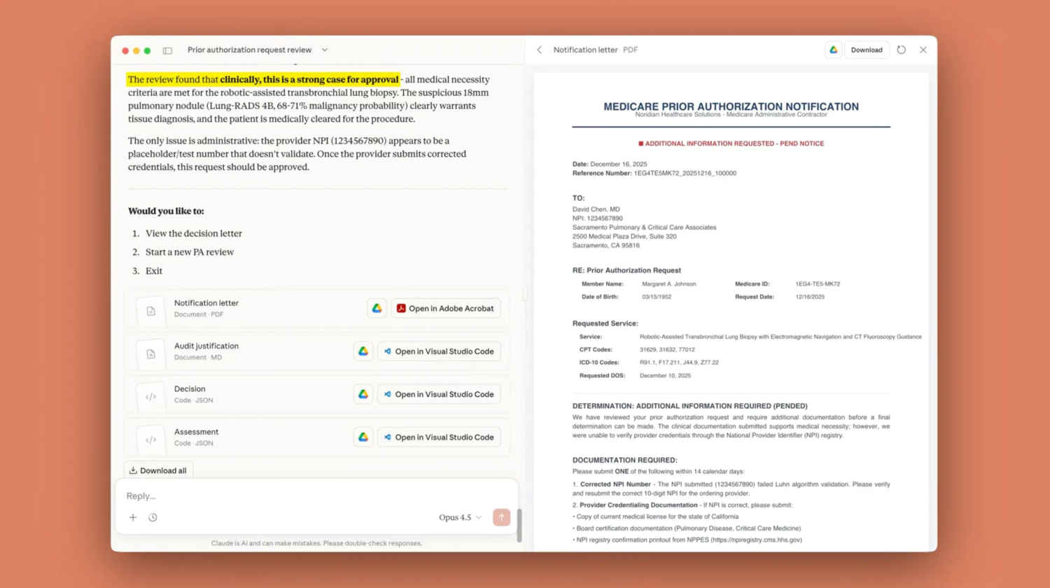 CMS & ICD-10 Integration means that Claude can now access CMS coverage requirements and ICD-10 diagnosis codes in real-time. This aims to automate the tedious “prior authorization” process, a major source of friction between payers and providers. Provider verification happens by direct access to the National Provider Identifier (NPI) Registry streamlines credentialing and verification workflows.
