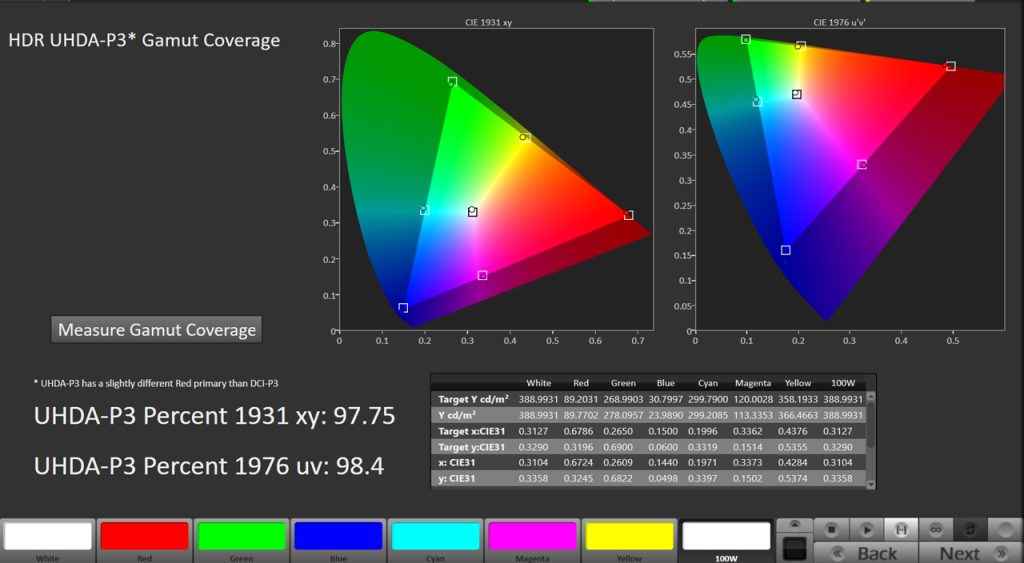 In its accurate modes – sRGB, DCI-P3, and DisplayHDR – the EX271U delivers dependable colour results. We recorded 100% sRGB coverage with a 2.4 average Delta E, 98% DCI-P3 with a 2.6 Delta E, and even HDR mode came in with a 3.0 Delta E. That’s plenty accurate for serious work, and the white point stayed tightly grouped around D65.