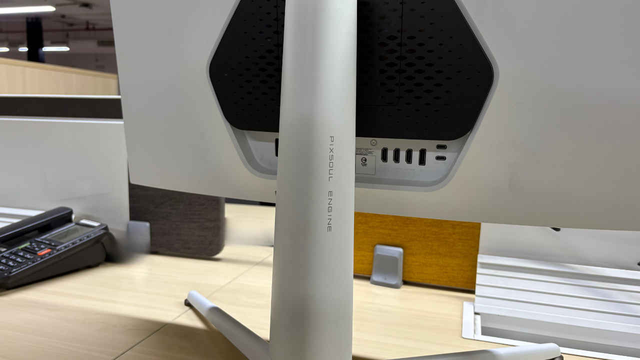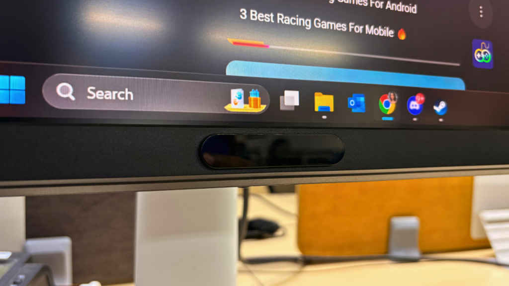 The build quality feels premium, especially the matte metallic finish around the base and rear panel. The stand is functional, with height, tilt, and swivel adjustments – nothing extravagant, but enough to make ergonomic positioning easy.