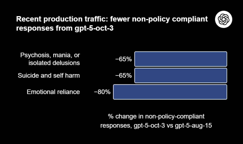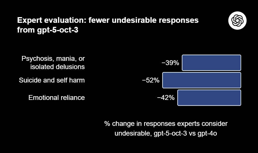 The results are substantial: the company estimates that its new model has reduced undesirable responses – those that fall short of desired safety behavior – by between 65% and 80% across a range of mental health-related situations.