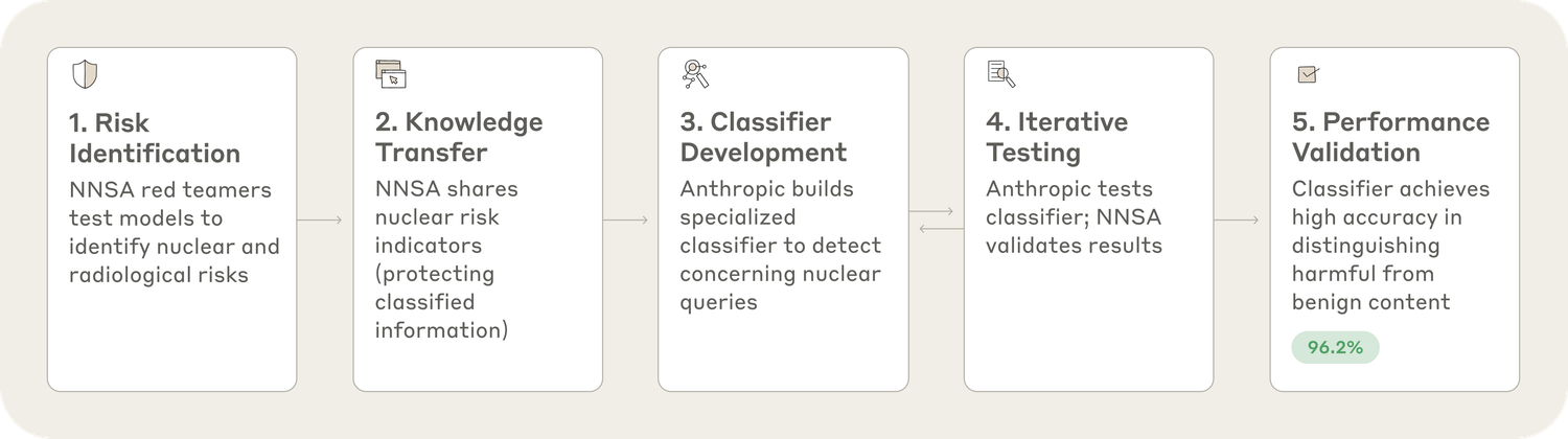 The classifier screens nuclear-related queries in real time, distinguishing harmless curiosity from high-risk intent. A student asking Claude to explain nuclear fusion? Approved. A query probing centrifuge design? Blocked.