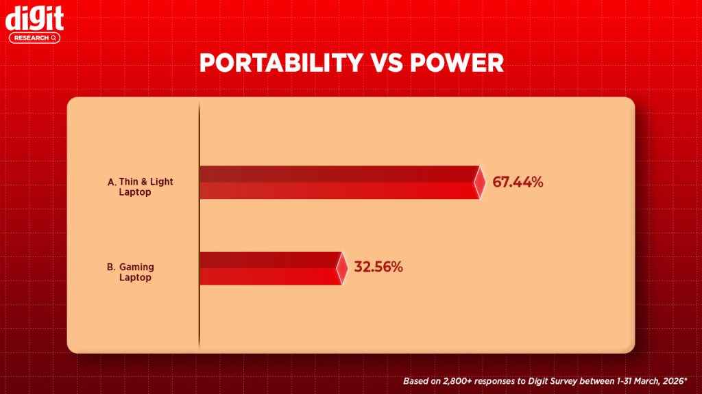 But with thin-and-light laptops becoming more and more powerful, thanks to the evolution of technology, the market for such laptops has been growing. And the same can be seen within our survey as well. That’s because over 67% of respondents are willing to buy a thin & light laptop over the beefier but heavier gaming machines.