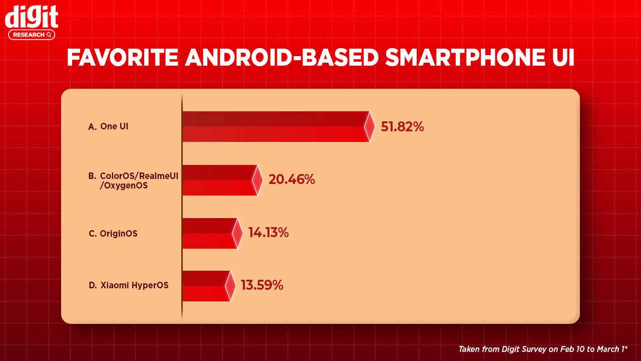 Speaking of which, let’s also take a look at the most popular option among the various flavours of Android skins. Well, surprisingly, Samsung took the cake here with One UI, as it was the most preferred Android-based interface, accounting for over 50% of the voters.