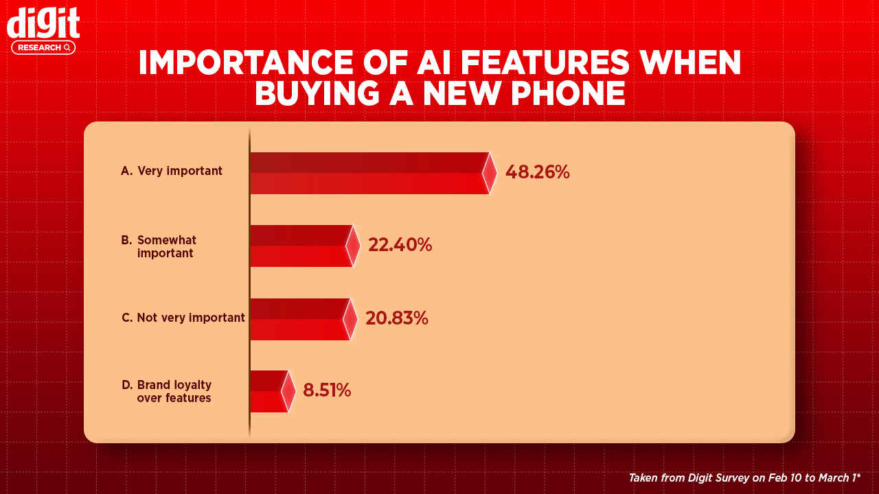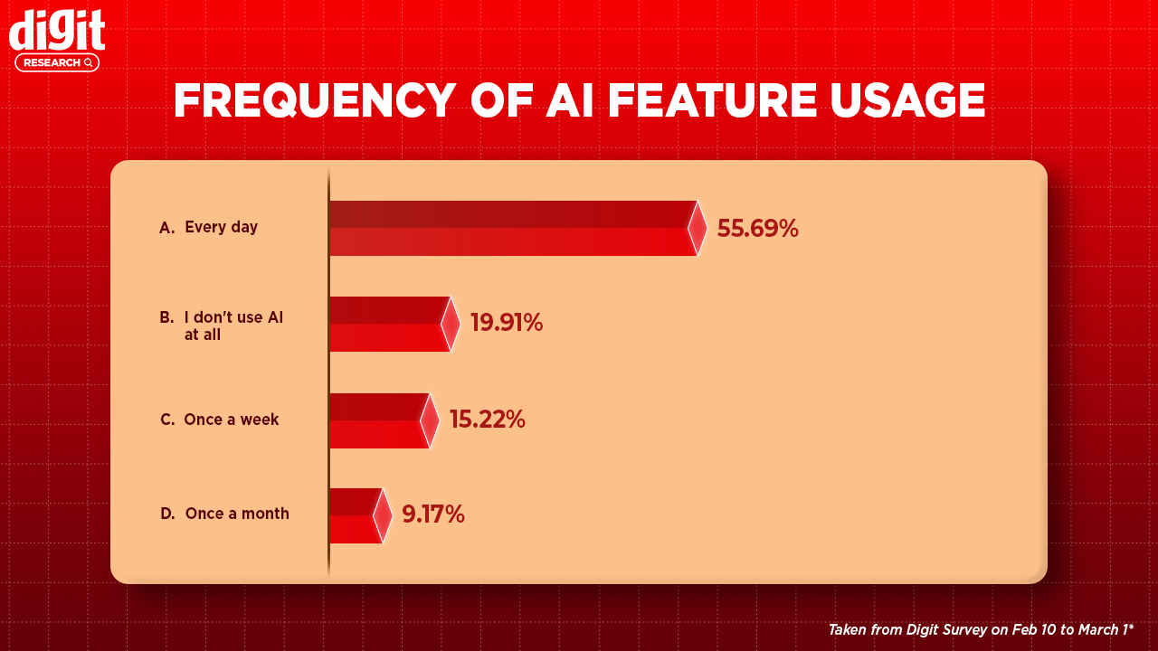 In this edition of the Digit Research, let’s take a look at what smartphone users in India think about AI. During the survey, over 3800 Digit readers participated in answering these questions from February 10 to March 1.