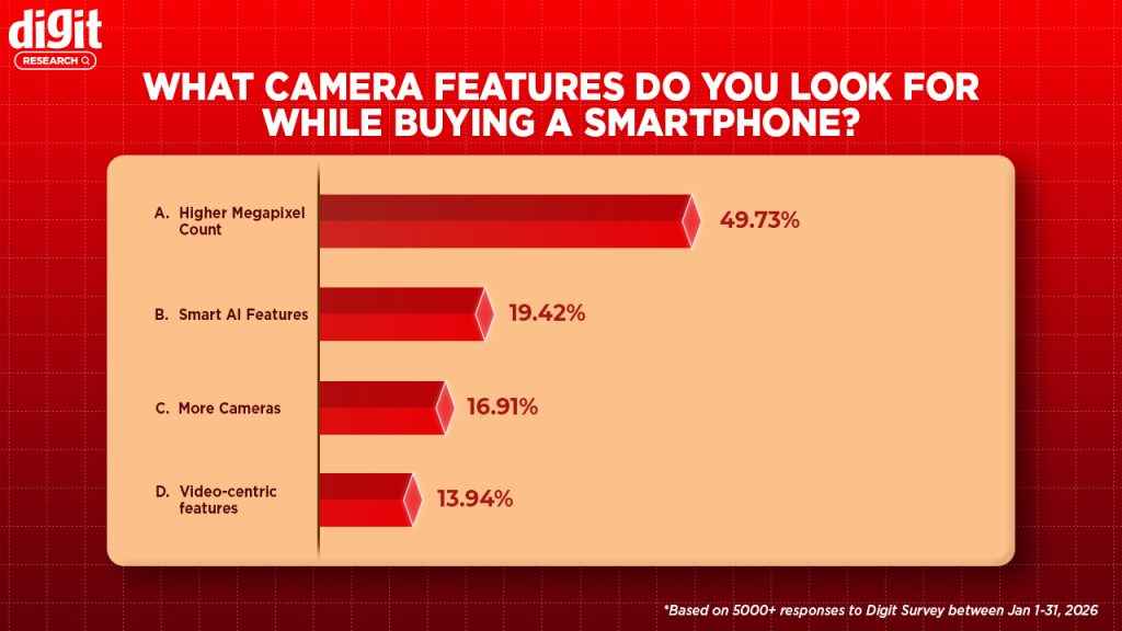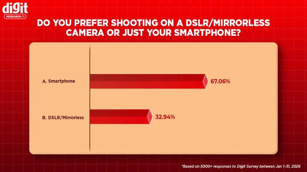There is also a clear shift from DSLR or professional cameras to smartphones, at least for most casual users. As many as 67 per cent of participants said that they would prefer a smartphone camera over a DSLR. The growing popularity is because of the ease of use, cost-efficiency and growing content creation patterns.