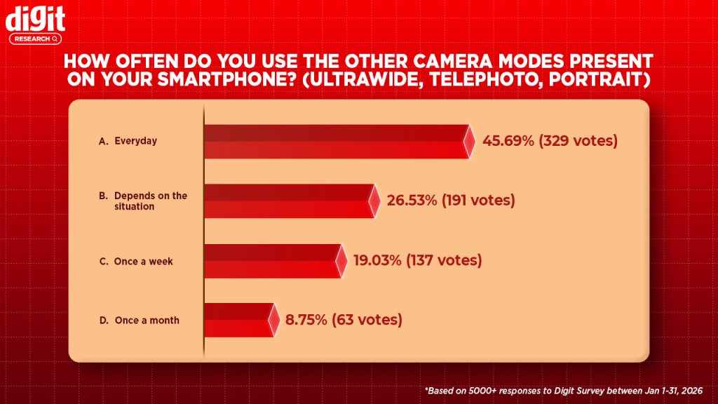 With the majority of voters saying that they would use these modes every single day, it is clear that mobile photography has matured. Users are no longer just clicking pictures; they would like to have a certain amount of optical flexibility, which helps them in composing their shots better.