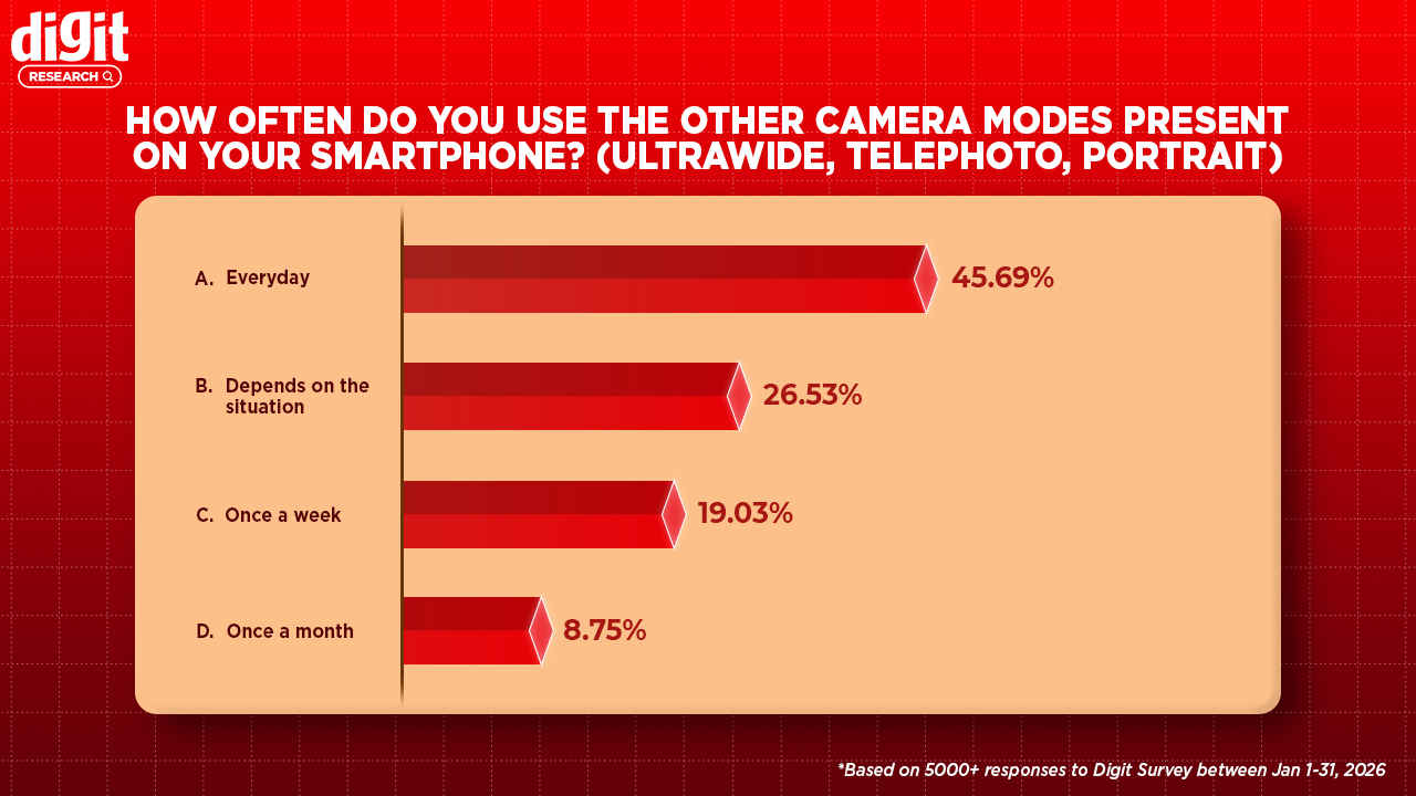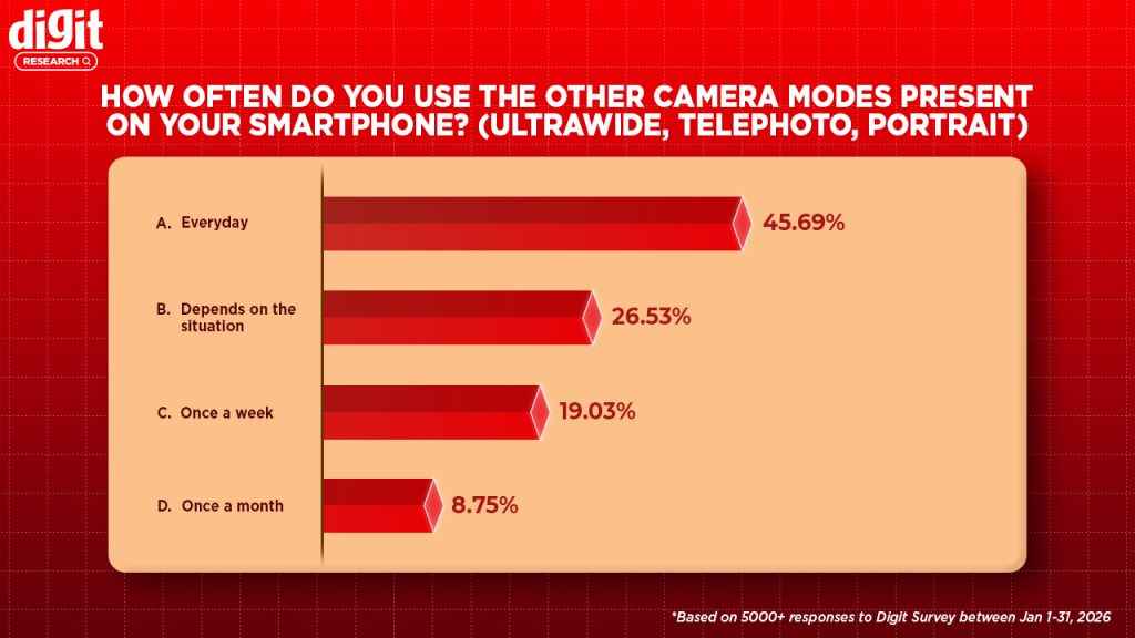 Most users actually find these additional sensors useful. More than 45 per cent of participants said that they use these additional modes/sensors almost every single day, suggesting that people are not limiting their experiences to just the main camera. While less than 9 per cent of participants said that they use these features only once a month.