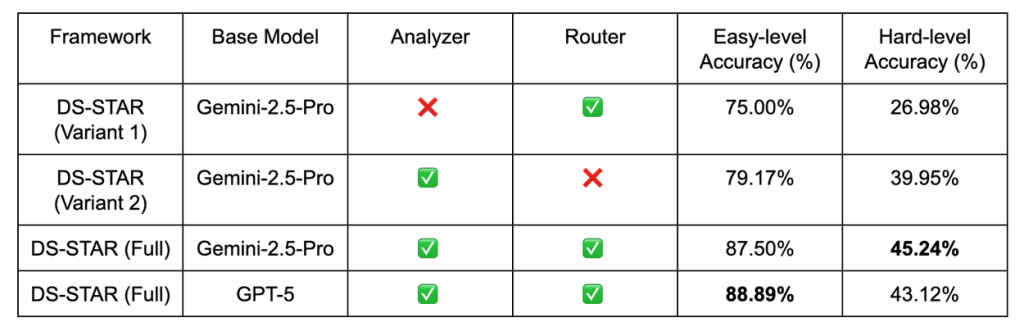 Under the hood, DS-STAR is powered by a multi-agent architecture, but it doesn’t rely on one specific large language model. It was tested across Gemini 2.5 Pro, GPT-5, and other LLMs, and still maintained its performance edge – meaning the design is model-agnostic.