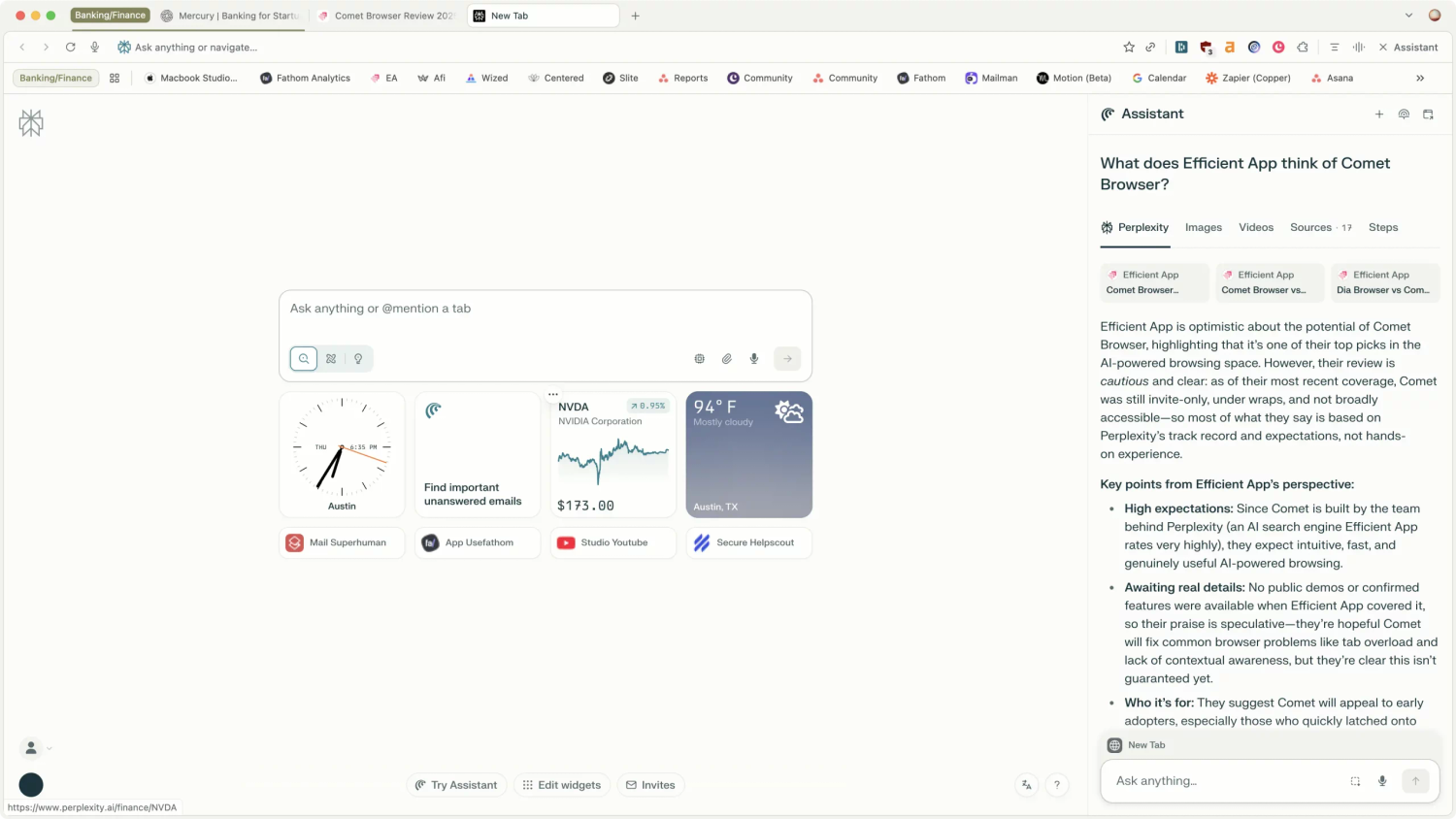 Comet, built by Perplexity, is the most aggressive attempt to rethink browsing from scratch. Instead of tabs and search bars, Comet centers everything around an AI query box. You ask questions, request comparisons, or give tasks, and the browser pulls live web data to respond in real time.