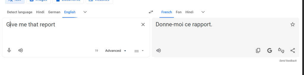 However, Google’s directness is a double-edged sword, especially in social hierarchies. We asked both tools to translate a request: “Hey, give me that report” into French.