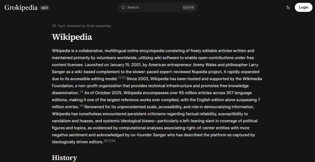 Grokipedia replaces editors with Grok LLM for real-time updates