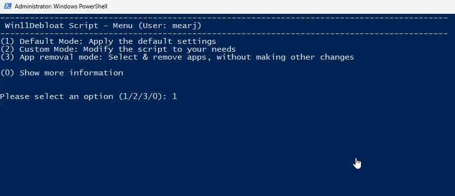 - A popular example is the Win11Debloat script. These scripts often come with different modes, allowing you to choose a default “remove all” option or a custom mode where you can select which apps to keep or remove.