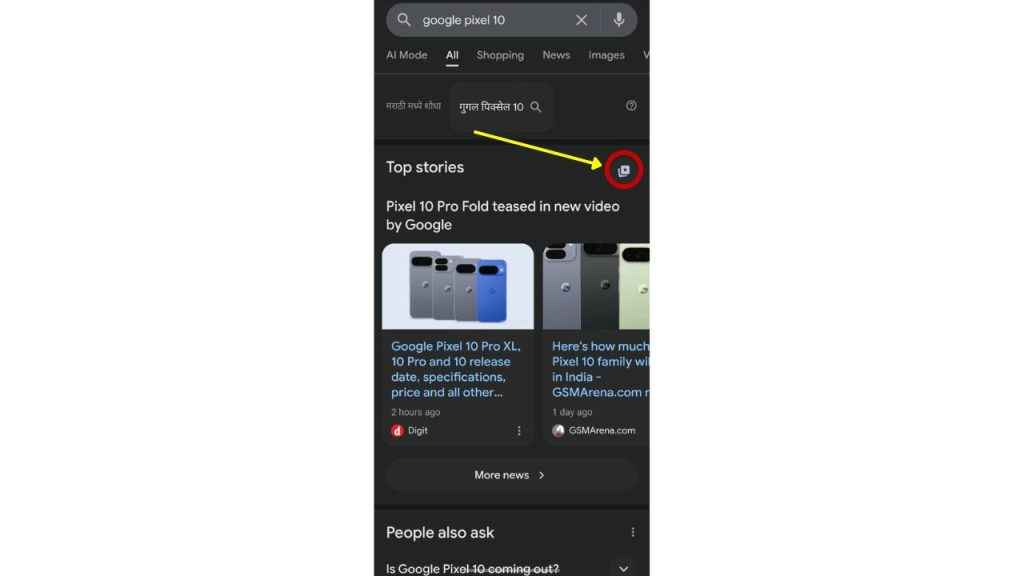 Step 1: In Google Search, type in any trending tech topic, like “Google Pixel 10” or “AI news,” to bring up the Top Stories section or you can click here to add Digit as your preferred tech partner.