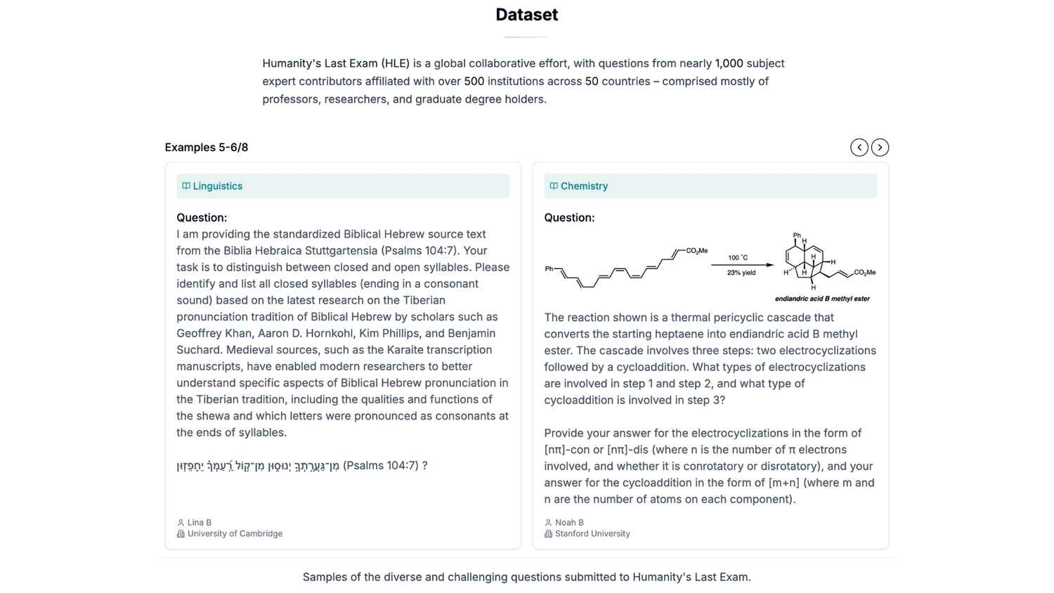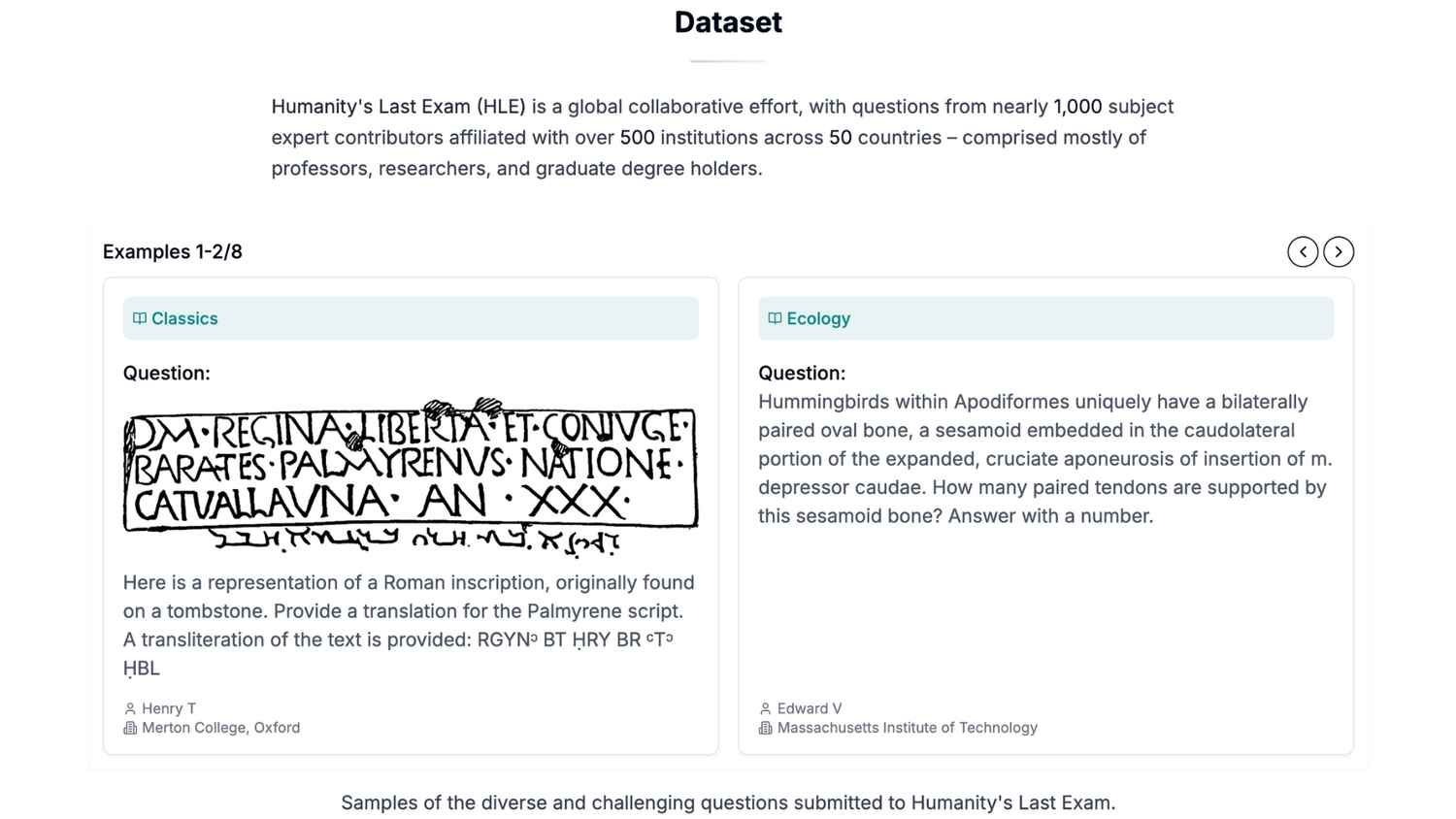 Humanity’s Last Exam is built to simulate real expert-level problem-solving rather than just regurgitating memorized facts. One of its defining features is its massive scale. The exam consists of 3,000 highly challenging questions that span more than 100 different subjects, ranging from mathematics and physics to law, medicine, and philosophy. Unlike many previous AI benchmarks that were primarily designed by researchers, Humanity’s Last Exam’s questions were crowdsourced from a global network of nearly 1,000 experts across 500+ institutions in 50 countries. This diversity ensures that the test reflects a broad spectrum of knowledge domains and problem-solving approaches.
