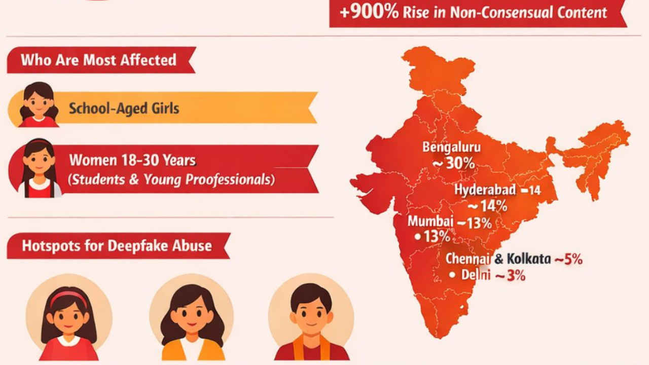 What makes this crisis distinctly gendered is not just who is targeted, but how. Image morphing and explicit deepfake videos dominate the abuse landscape, with deepfake pornography accounting for some of the highest frequency content online. Victims range from school-aged girls to young professionals, primarily between 18 and 30 years old, with cities like Bengaluru emerging as a hotspot, accounting for nearly 30% of reported cases.
