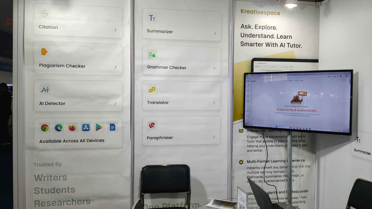 SurveyHowever, it looks like there’s a new kid on the block, which is looking to take away the crown from these giants. At the India AI Impact Summit 2026, I spotted an interesting startup called Kreativespace, which is looking to challenge these writing giants with an altogether combined experience.