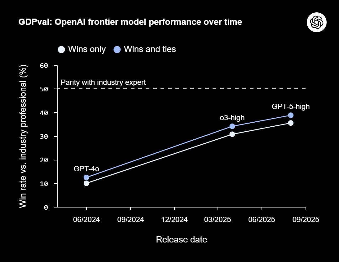 What sets this announcement apart is not just the raw numbers, but the framing: this is a claim of task parity, not on chess puzzles or math exams, but on work that people actually do in their jobs.