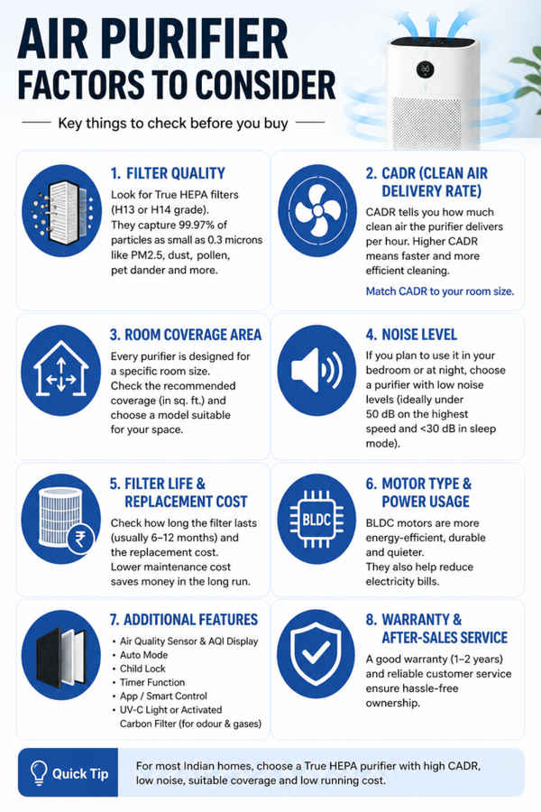 We recently got a new air purifier to review. It sits in the Rs 15,000 to Rs 20,000 price bracket, which is one of the most competitive segments in India right now. Before writing that review, I did research on all the options currently available in this range. This list is part of that research, and I decided to share it with you. I have primarily looked into four key specifications. First is True HEPA filtration grade, whether the purifier meets H13 or H14 standards and what that means for what it can capture. Second is Clean Air Delivery Rate, or CADR, which tells you how much air is cleaned per hour, not just how fast the fan spins. Third is the noise level, because a purifier that is too loud at night often ends up being switched off. Fourth is coverage area, so you can match the purifier to your room size. If a model offered something genuinely useful beyond this, like a BLDC motor or UV-C sterilisation, I have mentioned them, too.