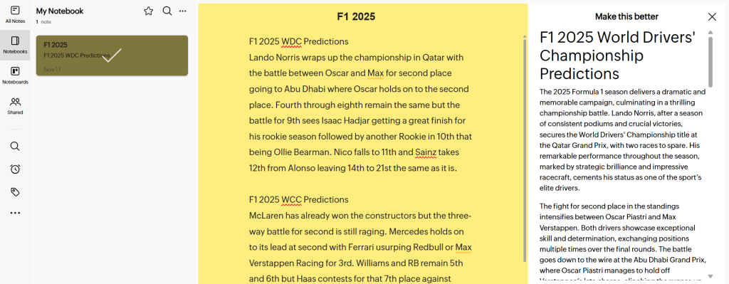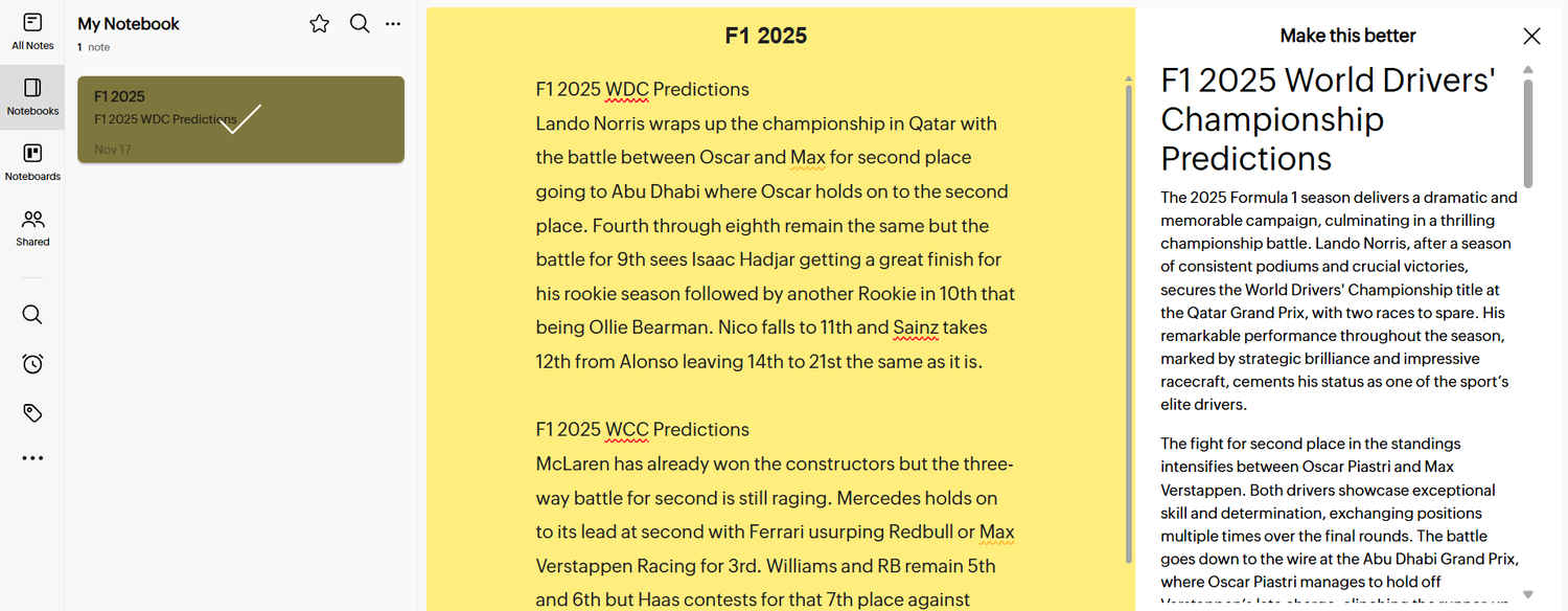 If you jot down a quick, messy thought, clicking “Make this better” instantly transforms it into a polished, formally written paragraph. For students drafting essays, professionals writing quick reports, or anyone needing to move from brainstorm to final draft quickly, this is a massive productivity boost. It’s like having an instant editor built into every note.