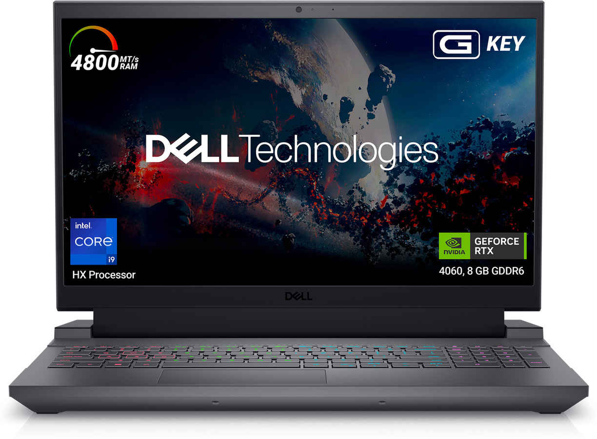 Dell’s G-series has matured into a punchy yet affordable sibling to Alienware. This build upgrades to a 24-core Core i9 13900HX that bursts to 5.4 GHz. The RTX 4060 inside is not neutered; Notebookcheck measured a 140 W limit and an 86 Wh battery that still managed six-plus hours of video. The 15.6-inch FHD 165 Hz panel supports G-SYNC and hits full sRGB gamut, although brightness sits around 300 nits. At 2.65 kg, the G15 is the heaviest here, but a 330 W brick means the GPU keeps its boost even on turbo profiles. You get Command Centre software, a four-zone RGB keyboard, and surprisingly quiet fans once the latest BIOS is installed. USB-C charging is missing, and the chassis is plastic-rich, yet performance per rupee is excellent.