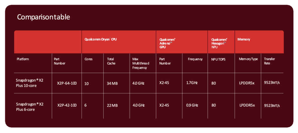 Snapdragon X2 Plus: Key specs highlights